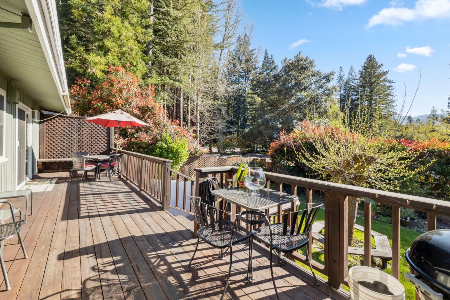 Immersed in the serene embrace of a Redwood forest, this meticulously maintained home offers a tranquil retreat surrounded by lush greenery and a canopy of stars. The heart of the home, a custom kitchen, boasts rustic alder wood cabinetry with full-extension drawers and stainless steel appliances, including a built-in refrigerator, wall oven, dishwasher, sink, and electric cooktop. Enhanced with Anderson windows and sliding doors, the residence ensures a harmonious indoor and outdoor living blend. For 35 years, this sanctuary has been lovingly upgraded, including remodeled bathrooms with stone tile floors, comfortable-height toilets, a jacuzzi bathtub, and vanity mirrors. The backyard, a verdant oasis with a sod lawn and sprinkler system, invites relaxation and enjoyment in the above-ground Sundance spa. This safe, peaceful haven has been a cherished setting, fostering a close-knit community where people thrive together. The home is on sewer and not septic, serviced by Bear Creek Estates Wastewater System. A true gem in a picturesque setting, this home is a testament to care, comfort, and the joy of forest living. Follow Bear Creek Rd into downtown Boulder Creek for shopping and dining, or head east to emerge from the forest in Silicon Valley.